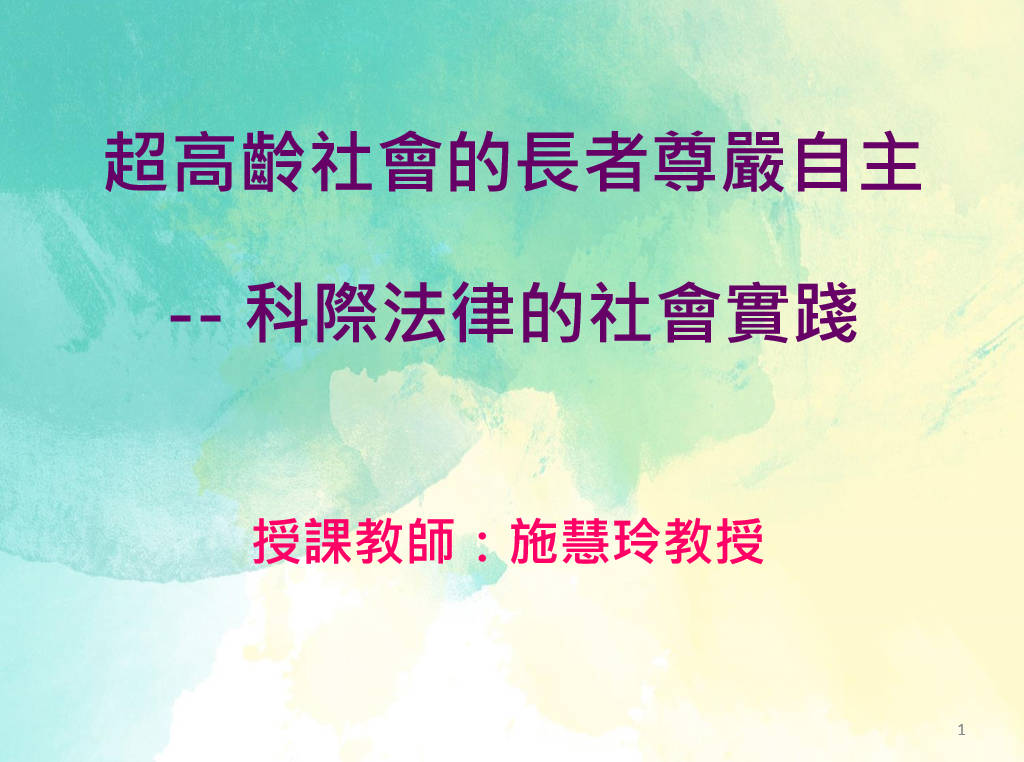 超高齡社會的長者尊嚴-科際法律的社會實踐 |