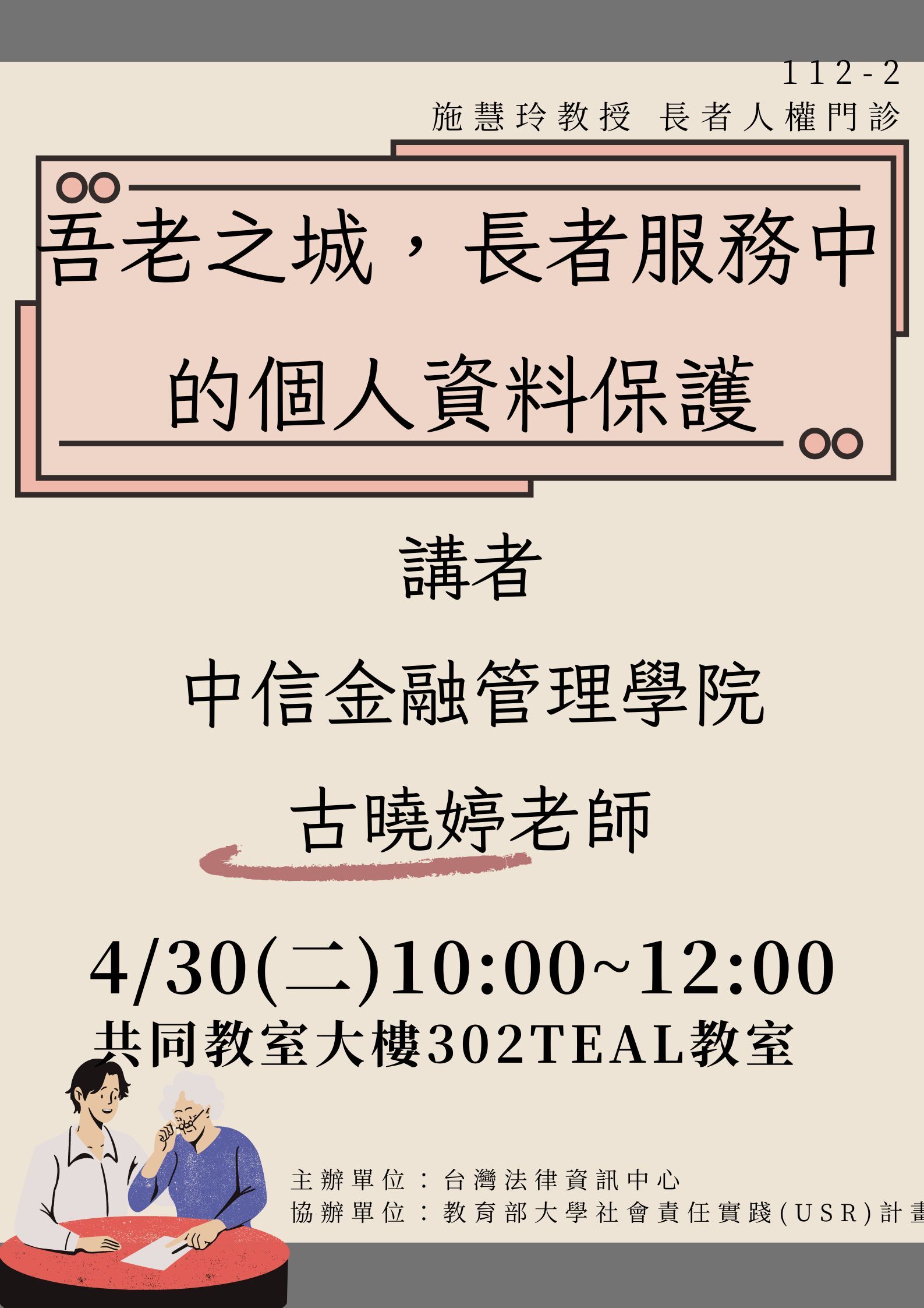 【演講】2024-04-30 (二) 1010-1200 吾老之城,長者服務中的個人資料保護