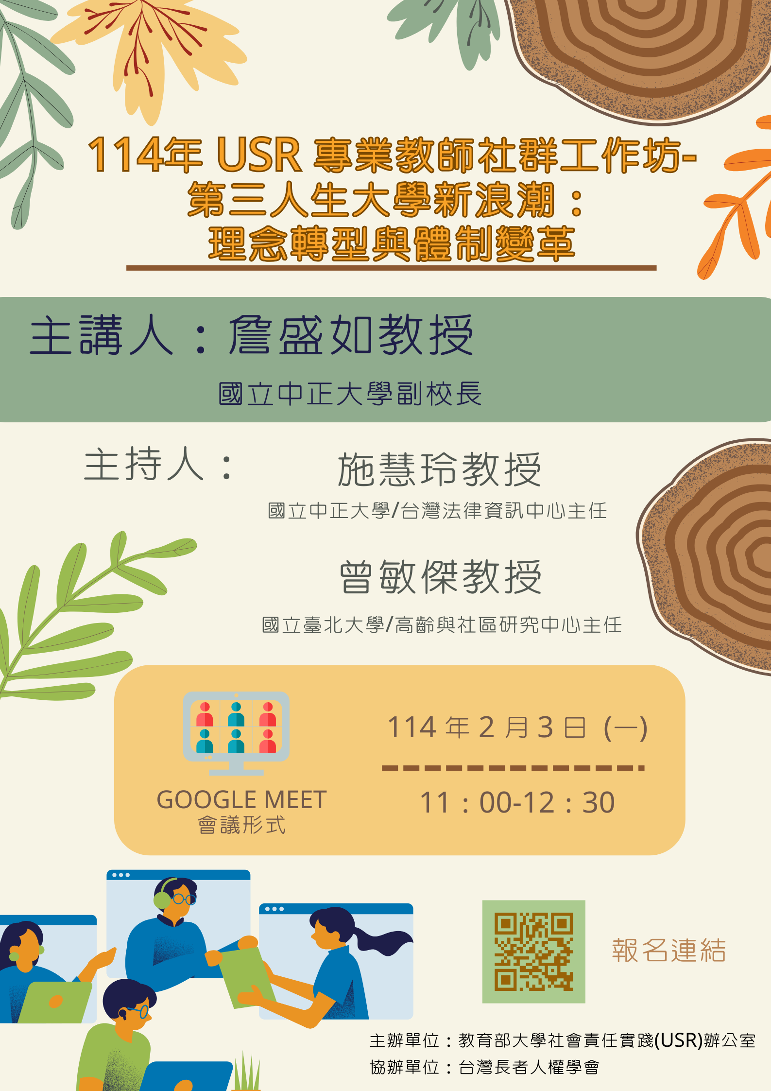 【演講】2025-02-04(一)1100-1230 第三人生大學新浪潮: 理念轉型與體制變革